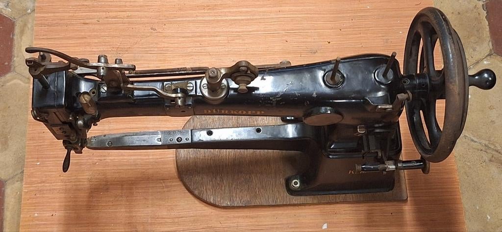 - machine à coudre ancienneAncienne machine à coudre de marque morisons anvers avec quelques accessoires. Cette machine fonctionne encore lorsque la courroie est fixée à la roue du pédalier.Enlèvement