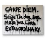 - Johanne8 (1974) - « Carpe Diem. Zeise the day, boys. MakeJohanne8 (geboren in 1974) biedt een origineel schilderij op doek uit 2026 gemaakt met straatkunst aerosol, getiteld “carpe diem. Zeize de day, boys. Make your lives extraordinary.”, In zwart-wit cult