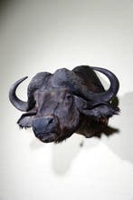 31 août 24jaro - shopEeklo - Grand buffle du Cap Support mural pour taxidermie - SyncerusSpecimen : buffle du cap, syncerus caffer ; origine afrique ; état de conservation: en bon état ; année 2022 ; dimensions hauteur 100 cm, largeur 98 cm, profondeur 90 cm ; poids 20 kg.
