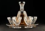 - Baccarat - Karaf - .950 zilverZilveren set in 950-prnd (minerve) met baccarat karaffel en glazen op een zilveren schaal, met dik geslepen glas; karaf hoogte 21 cm, glas hoogte 8 cm, schaal diameter 26 cm; afkomst frankrijk, begin