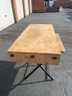 16 mars 26DDMenen - Hakblok kapblok slagersblok beenhouwersblokMooie oude kapblok werd jaren gebruikt in de slagerij van mijn grootvader. Origineel stuk met mooi patina. Kapblok, beenhouwsblok, hakblok groot model met twee laden lxbxh is 140x75x90 leuk uniek stukEnlèvement
