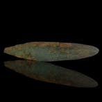 HierWilliamEkeren - Bronstijd Mes dolk lemmetBronze age mes/dolk blad, kwaliteits gietbron brons, blad met bladerenvorm ca. 17,8 Mm lang, met scherpe rand en olijfgroene patina, in goede stevige staat, houten handgrepen ontbreken, afkomstig uit