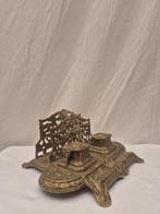 - Inktpot - MessingElegant antiek dubbel inktstel van messing in barok revival-stijl, frankrijk, circa 1850–1900, met afmetingen van 14 cm hoog, 30 cm breed en 24 cm diep en een gewicht van circa 2,5 kg, in goede staat