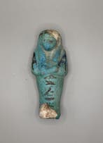 3 août 25joSint-Pieters-Leeuw - Oude Egypte, late periode Faience Shabti-figuur, 12,5 cmAntiek egyptisch faience-shabti-figuur, circa 711–30 v.chr., Circa 12,5 cm, in goede staat, oorspronkelijk eigendom van het ifergan museum; in 2026 afkomstig uit frankrijk via veilinghuis. Een mummie-