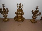 4 avr. 26JeanHalle - Antiek 3-delig koperen schouwgarnituurAntieke schouwgarnituur klok 48 cm. H. En 2 kandelaars 42 cm. H. Klok werkt, met sleutel afhalen in evergemEnlèvement