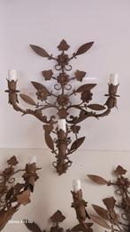 13 mars 26Bambam BrocanteLede - Applique murale - Fer - Une paire de grandes appliquesPaire de grandes appliques murales en fer forgé travaillé à la main avec éléments en métal doré et patiné, style revival louis xvi, chaque lampe à quatre bras, dimensions 61 cm de haut, 58 cm de large