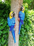 - Beeldje (2) - IJzerTwee ijzeren decoratieve ara’s, elk 36 cm hoog, 14 cm breed en 10 cm diep, in goede staat - gebruikte met kleine tekenen van ouderdom en vlekjes, geschikt om aan een boom of muur te hangen. Betreft hi