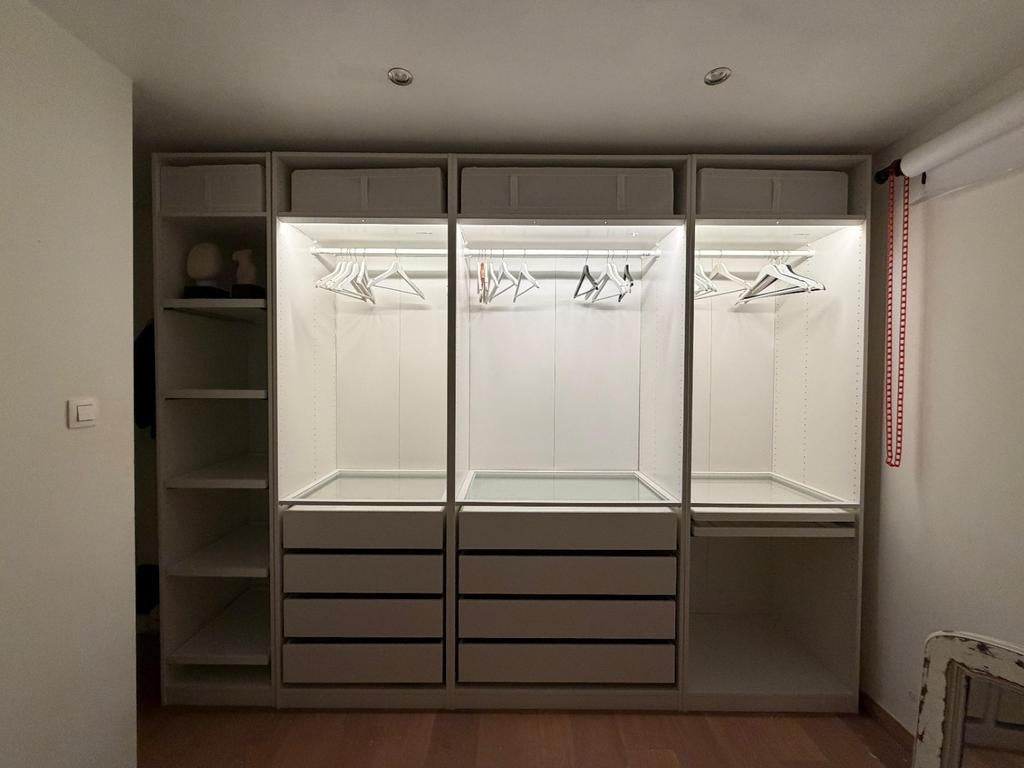 - Armoire Ikea Pax 300x58x236 en parfait état avec éclairage eLe meuble n'a qu'un an et est en parfait état. Voir les dernières photos, il y a 2 dommages très mineurs sur la plus petite section de l'armoire. Vous pouvez également placer les armoiresEnlèvement
