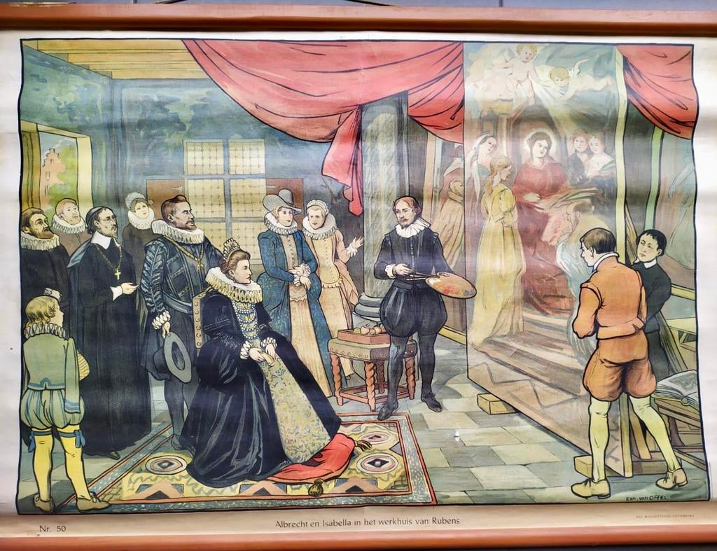 - Affiche Rubens Albrecht et Isabella Van Offel Nr. 50Affiche de l'école rubens — albert et isabella — van offel — n° 50 - belle assiette scolaire ancienne - les archiducs albert et isabelle rendent visite à peter paul rubens dans son atelier - inscrEnlèvement ou Envoi