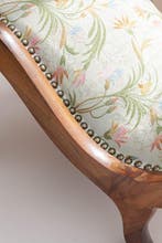 14 avr. 26Bernard LefebvreAuderghem - Repose-pieds - Acajou, Damassé de soieRepose-pieds antique de style régence, fabriqué au royaumeuni, cadre en acajou, pieds sabre, revêtement en damas de soie à motifs végétaux, daté circa 1850–1900, en bon état d’usage avec de légers sig