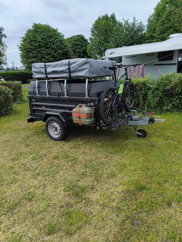 28 août 24sabrinaMontignies-Sur-Sambre - Remorque avec tente de toit, cuisine, douche extérieure,...Après de nombreuses aventures et la construction d'un nouveau projet, je mets en vente cette remorque équipée avec tente de toit thule. Toujours à l'intérieur lorsque je ne men sert pas. AucunUtilisé Enlèvement
