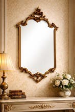 Aujourd'huiPub au topCatawikiToute la Belgique - Miroir - BoisGrande miroir mural de style vénitien/rococo avec cadre en bois sculpté et doré, dimensions 130 × 70 cm (zone miroir 85 × 55 cm), époque xxe siècle, italie.
