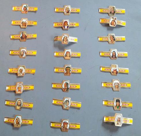 - 24 bagues cigare indien marque cogetamaSérie compète de 24 bagues de cigare numérotée de1 à 24 thème les indiens dimension 5 x 2 cm marque cogetama bon état frais d'envoi en fonction du choix ref bte fer fleurUtilisé Enlèvement ou Envoi