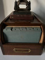 Aujourd'huiPub au topCatawikiToute la Belgique - Outil de travail (2) Vintage - Armoire à archives etBahut archivé en bois belge avec un volet roulant et une perforatrice art déco, deux objets, en bon état avec de légers signes de vieillesse et des taches.