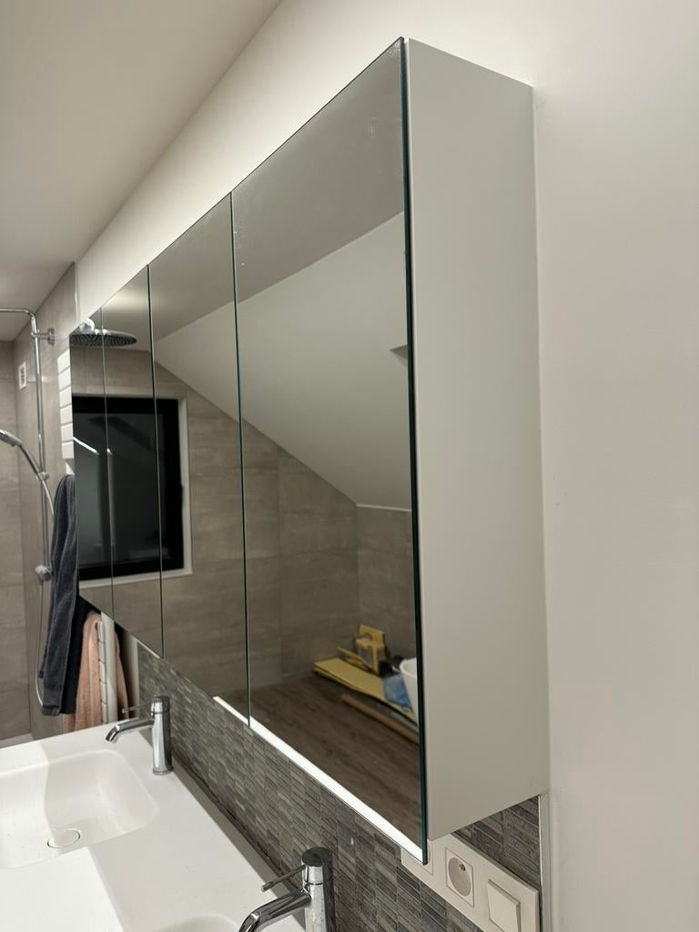 HierJessSint-Katelijne-Waver - Led spiegelkast - badkamer, merk BalmaniAfmetingen: l: 100cm b: 45cm d: 15cm nieuwstaat, verwarmingselement (anti-damp) werkt niet, verlichting werkt wel. Nieuwprijs: 700euro (originele doos nog beschikbaar)Comme neuf Enlèvement