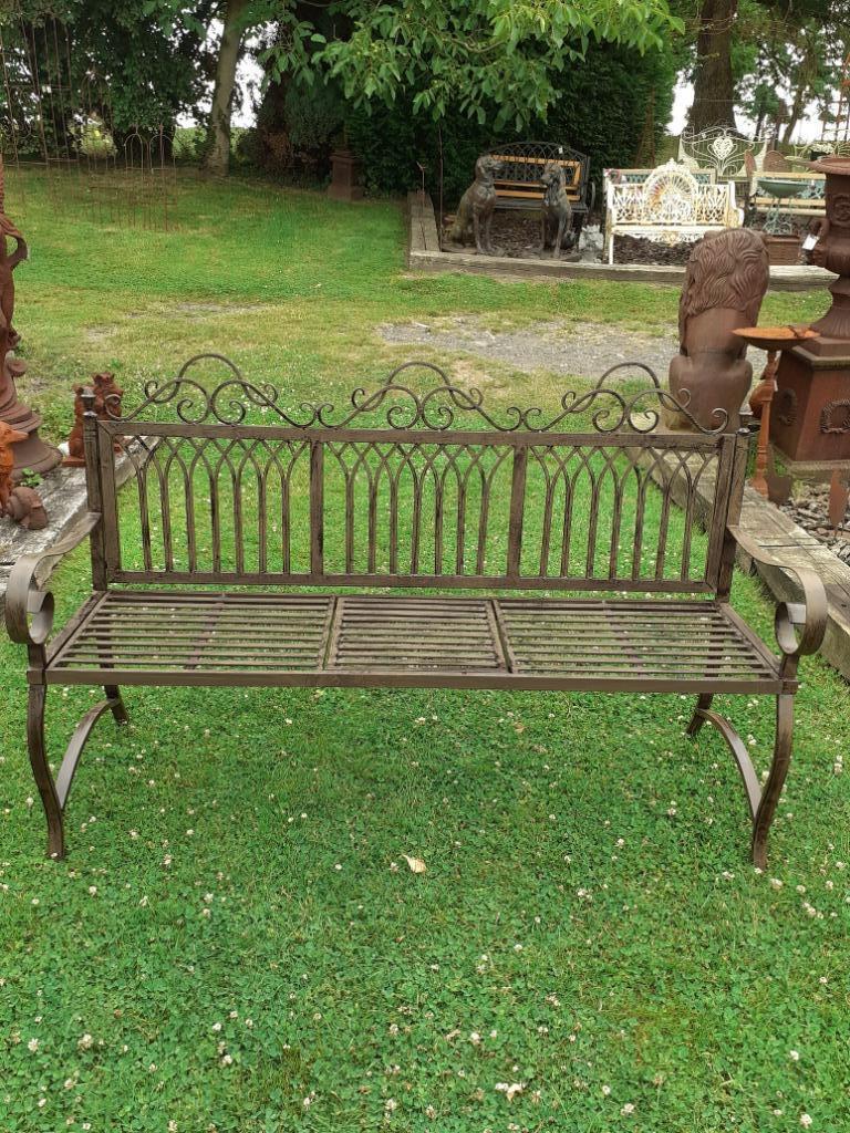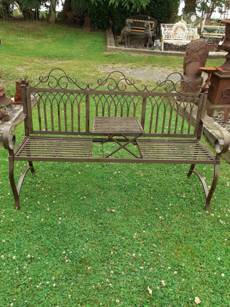 27 mars 26le grenier du lavuChapon-Seraing - banc de jardin en fer forgé couleur gris rouilléMagnifique banc de jardin en fer forgé plein avec accoudoirs . Couleur gris rouillé au choix , convient pour 2 adultes . Très jolie décoration et utile dans un jardin , terrasse ,au bord d une pièce dNeuf Enlèvement