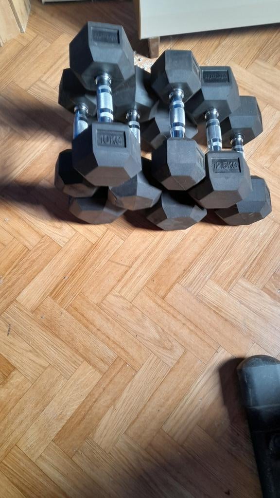 31 mars 26femke de waeleNazareth - Haltères et haltères2 x 15 kg 2 x 12,5 kg 4 x 10 kg 2 x 7 kg lot de 2 fers à repasser barre de 20 kg et 10 kg banc de musculation x banc pour abdominauxEnlèvement