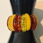 - Bracelet extensible multicolore à teinte ambre baltique -Bracelet élastique multicolore couleur ambre baltique avec perles miel, cerise et citron, bande extensible, pour femmes, en excellent état, poids total 43 g.