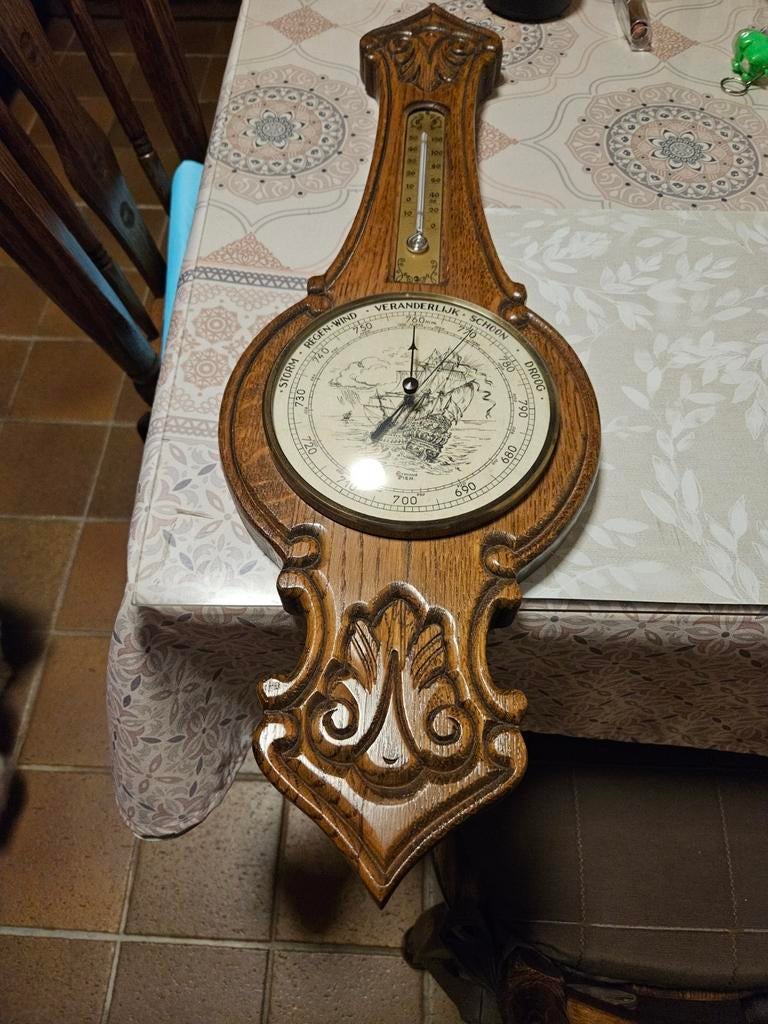 24 janv. 26Jarne PeetersRiemst - Antieke barometer-weerstationPrachtige antieke houten barometer/weerstation van de belgische metereoloog en weerkundige armand pien. Omvat thermometer, barometer en hygrometer. Dateert van +- 1960. Massief houten behuizing met veEnlèvement