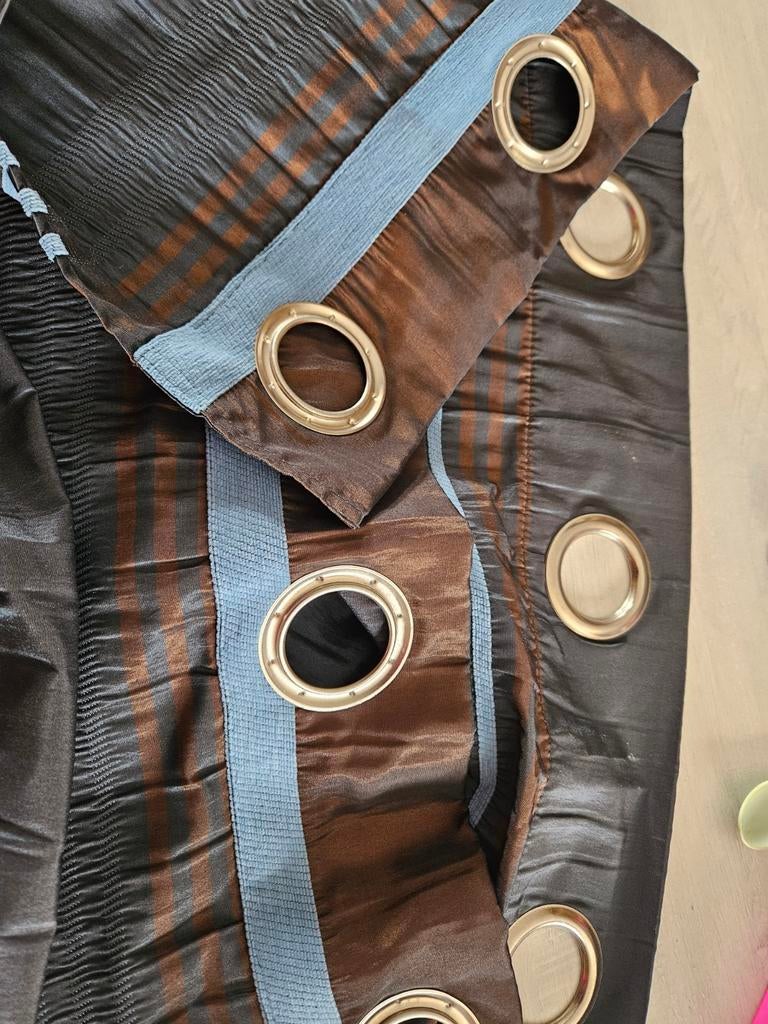 8 nov. 22duboisTournai - Deux tentures lignées2 tentures lignées de dimension identiques couleurs beiges marrons blanches et vertes hauteur 2 m 17 plus11 cm de pattes pour glisser la barre largeur 2 m11 possibilité de rachat de barresComme neuf Enlèvement