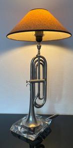 - Franco Equipe - Tafellamp - Vernikkeld messing - TrompetlampVintage tafellamp vervaardigd uit een authentieke trompet door franco equipe (frankrijk), in mid-century modern-stijl (1950e–60e), verguld met nikkelplaat, basis van acryl, circa 70 cm hoog en 35 cm b