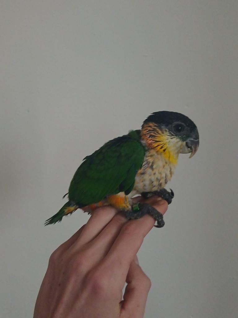 - Jeune caique apprivoiserBébé caique eam en cours de sevrage. 2 Tete noir, 1 tete orange. Apprivoiser et manipuler tout jour , habitué au bruit de la maison. 450€ prix fixe