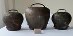 Koperen wandbel in vintagestijl uit 1950–1960, gemaakt van koper met een luide klank, 12,5 cm hoog, 11,5 cm breed en diep, gewicht 1100 g, goudkleurig, uit nederland, in goede staat met lichte ouderdo