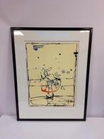 - Grote litho Beniti Cornelis, getekend, genummerd, ingelijst.Grote litho van beniti cornelis met voorstelling van een voor de kunstenaar typische compositie. Met potlood genummerd op 75 exemplaren en gesigneerd. Ingelijst met passe-partout in een smalle verguld