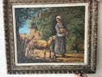 - Jean-Charles Millet (XX) - Bergère à lagneau et sonOlieverfschilderij op doek van jean-charles millet (xx), getiteld bergère à l'agneau et son troupeau, gedateerd 1935 in de periode 1930-1940, in olieverf, uit frankrijk, origineel editie, met de h