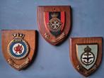 - 3 blasons britanniques, décor de bibliothèque vintageEnsemble de 3 armoiries murales mémorables de grande-bretagne, situées autour des années 60-65, cadre idéal pour la décoration d'une bibliothèque, d'une grotte à hommes ou de vitrines de boutiUtilisé Enlèvement ou Envoi