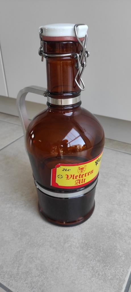 - Bouteille de bière rétro « Vleteren Alt » de 2 litres avec bBouteille de bière rétro « vleteren alt » de 2 litres avec couvercle en céramique. La bouteille est en verre brun et possède une poignée en aluminium et des sangles en acier inoxydable. Hauteur 35 cmEnlèvement ou Envoi