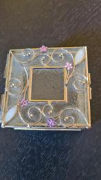 30 oct. 25LouisCharleroi - Boite en verre ornée pierres et métalBoite à bijoux carrée en verre martele certie de métal pierres ornementales en formes de fleurs 10x10cmEnlèvement