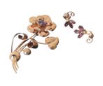 28 mars 26Pub au topCatawikiToute la Belgique - Sans prix de réserve - Ensemble de bijoux 2 pièces - BrocheParure vintage composée d'une épingle et de boucles d'oreilles en argent sterling avec cristaux d'améthyste, poids total 24,5 g; boucles d'oreilles à vis américaines estampillées « ste