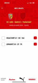 2 billets MAROC VS PARAGUAY, 150€ les 2