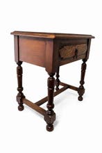 Aujourd'huiPub au topCatawikiToute la Belgique - Table dappoint - Bois - Table d’appoint rustiqueTable d’appoint en bois massif de style rustique louis xiii, daté circa 1900–1910, avec tiroir sur la façade et dimensions 54 cm (l) x 36 cm (p) x 59 cm (h), origine france.