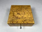 6 avr. 26NathalieEeklo - Boîte à bijoux - BoisBoîte à bijoux en bois avec motif floral pyrogravé dans le style art nouveau, datée de 1914, dimensions 7,2 × 17 × 16,8 cm, poids 361 g, intérieur velours bleu avec monogramme et date, inclut une clé,