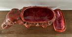 Aujourd'huiCaratpartsGenk - Boîte à bijoux - Olifant - Faïence - Vide-poche de boîte àéléphant en céramique avec couvercle, pouvant servir de vide-poches ou de boîte à bijoux, émaillé en rouge et de style midcentury modern, daté de 1940–1950, mesurant 17 cm de haut, 25 cm de large et 1