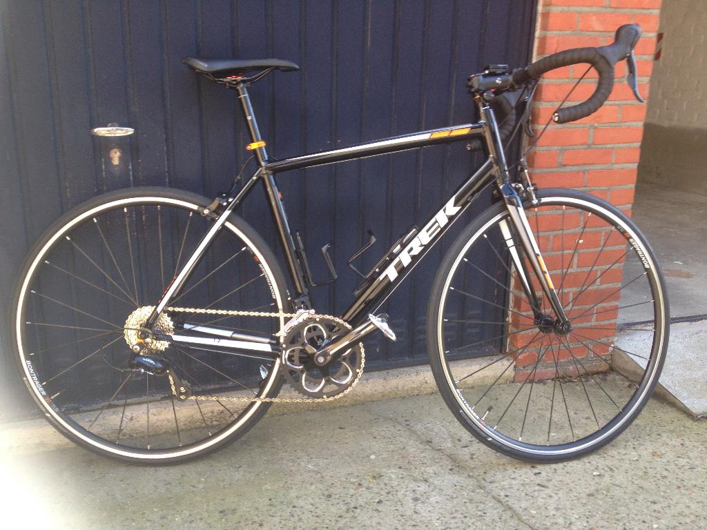 - A vendre : vélo de route noir de la série TREK 1.2 alpha ONECadre en alu - taille 56 - pédalier fsa vero 52/34 (compact) - boîtier de pédalier, roulements industriels étanches, - cassette à 9 vitesses shimano hg400 11-28 - chaîne kmc x9 - selle bontrager - volUtilisé Enlèvement