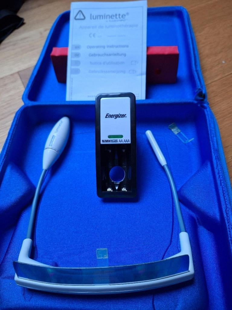 - Luminette 1 - lunettes de luminothérapie bril lichttherapieLuminette (société lucimed) est pionnière en matière de luminothérapie portable. Développées à l'université de liège, ces lunettes brevetées offrent une solution portable et éprouvée pour boosterUtilisé Enlèvement