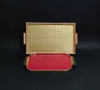 7 avr. 26Blockx MichelBeerse - Plateau décoratif - M.B - Italie - Paire de plateauxPaire de plateaux décoratifs des années 60 au style art déco par m.b italia, l'un doré en métal avec bordures et anses en métal doré et finition effet dune, l'autre en résine/plastique rouge a