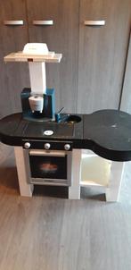 Speelkeukentje met toebehoren Keukentje bosch met diverse benodigdheden. (Potten en pannen, borden, bestek, keukenschort met ovenwant en koksmuts, stukjes fruit, pizza om te snijden). Het keukentje is nog in heel goede staat. Ook
