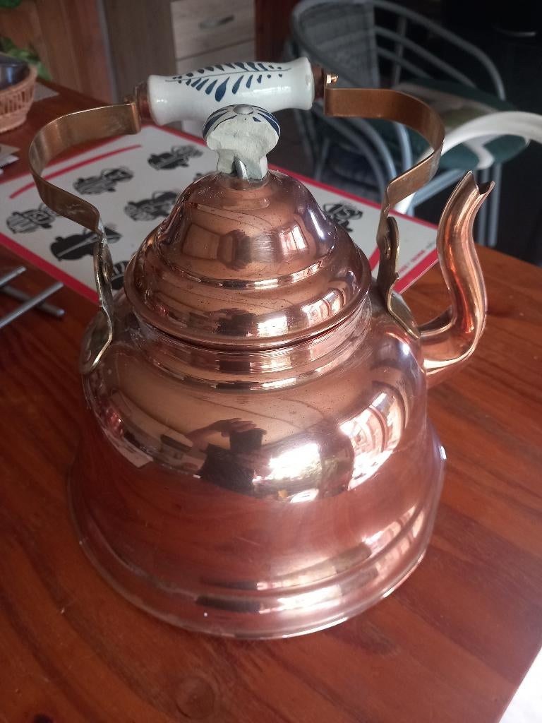 - BOUILLOIRE EN CUIVRE ET PORCELAINEAncienne bouilloire en cuivre et en porcelaine bouchon en porcelaine endommagéEnlèvement ou Envoi