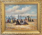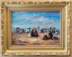 22 mars 26BaeyensBruxelles - Camille Rousseau (1949) - Normandie ~ Sur la plage unCamille rousseau, franse impressionistische schilder, origineel olieverfschilderij getiteld normandie ~ sur la plage un dimanche ensoleillé ~ hommage à boudin i uit 2000–2010, een zeegezicht aan de no