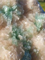 - Cristaux rares dapophyllite verte en forme de boule discoCristaux disco ball d’apophyllite verte rares sur stilbite blanche, originaires du maharastra, inde, présentés en cristal sur matrice, poids 2,5 kg, dimensions 22 cm de hauteur, 19 cm de largeur et 7