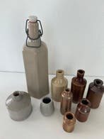 - Encrier (9) - GrèsUne collection de neuf fioles et pots d’encre en grès, datant de 1870–1930, originaires de france et d’angleterre, mesurant entre 6,7 cm et 30,5 cm de hauteur et entre 3,8 cm et 10,5 cm de diamètre, c