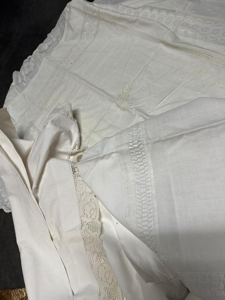 - Lot vintage de draps, taies, nappe en dentellesDeux boîtes de literie en dentelle vintage coussin, drap, couette et nappe... Prix négociableUtilisé Enlèvement