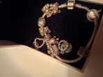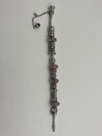 - Sans prix de réserve - Bracelet à breloques Argent -Bracelet pandora en argent (modèle pandora-925) avec 19 charms, dont 7 contiennent des zircones, longueur 20,3 cm, poids 60 g, en bon état avec une charm manquante une zircone et sans rapport de labor