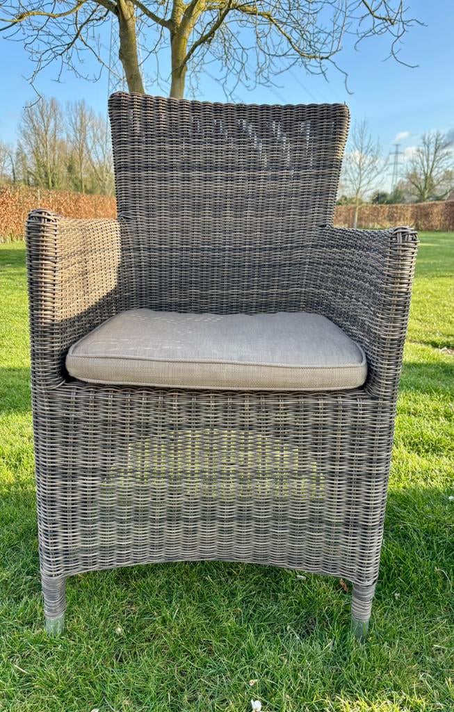 - Tuinstoelen BristolZes tuinstoelen van het merk bristol in goede staat. Materiaal: wicker, taupe kleur inclusief kussens op maat met wasbare hoesUtilisé Enlèvement