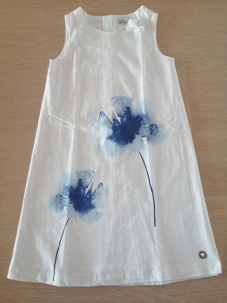 - Robe blanche fleurie Jbc 140Robe en coton blanc à fleurs bleues broche avec fleur sur le cou, fermeture éclair au dos porté seulement quelques foisComme neuf Enlèvement ou Envoi