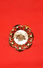 3 août 22Adelheid MaenhoutLeisele - ancienne broche rosace corbeille fleur centre (x2022)Ancienne broche de fantaisie en metal dore avec tour rosace ajourée et au centre une plaque imitation nacre avec corbeille fleurie au centre a l'arrière epingle avec fermoir sécurite diamètre 4Enlèvement ou Envoi